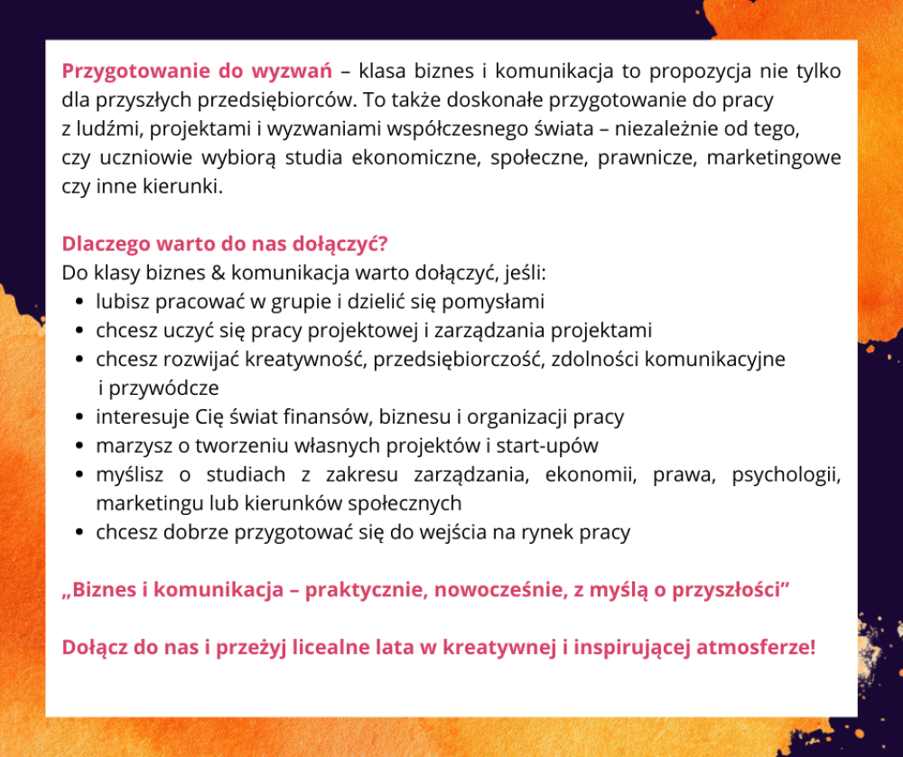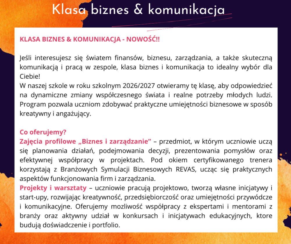 Klasa Biznes & Komunikacja - NOWY PROFIL od r. szkolnego 2026/27